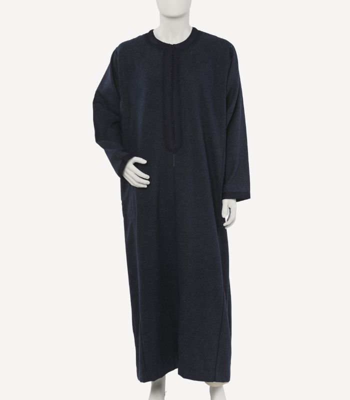 Caftan en flanelle travaillé à la main et en machine, doté d’une sfifa mrama en jacquard, conçu dans un tissu demi-saison hiver avec manches. Une pièce sophistiquée à l’équilibre parfait entre confort, élégance et savoir-faire marocain.
