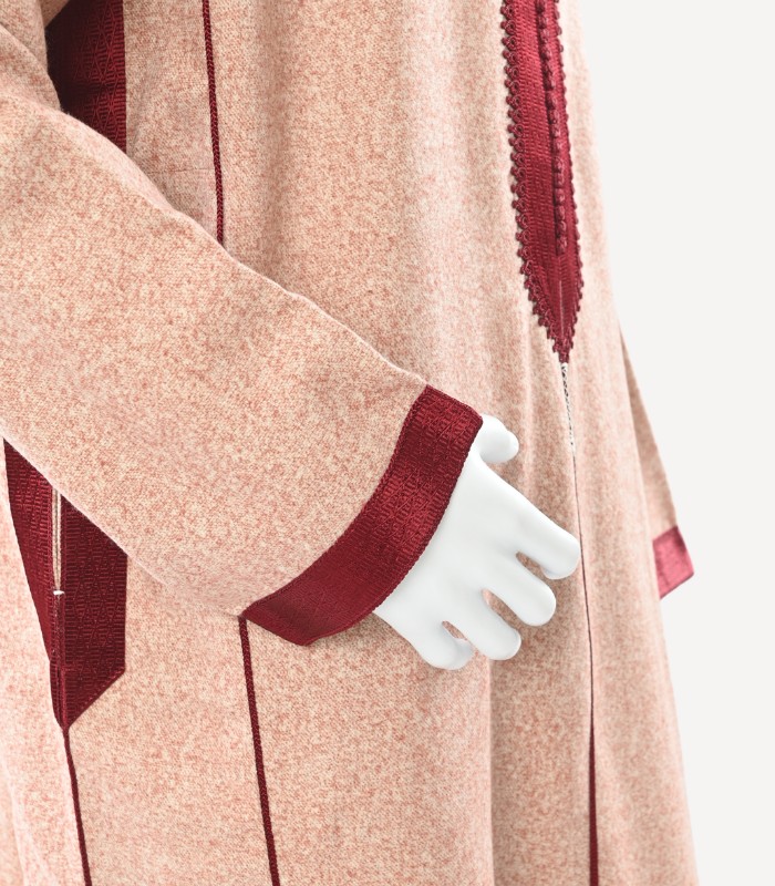 Sélectionnée pour sa qualité supérieure, cette matière noble procure confort et distinction, idéale pour les saisons fraîches ou les occasions spéciales. Sa texture subtilement luxueuse met en valeur la structure du caftan tout en conservant une allure sobre et sophistiquée.