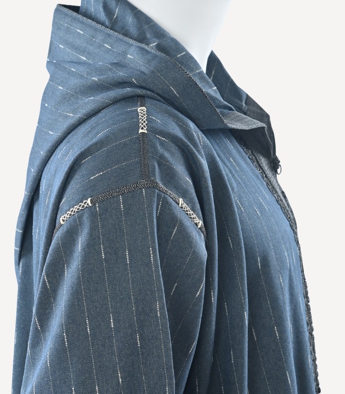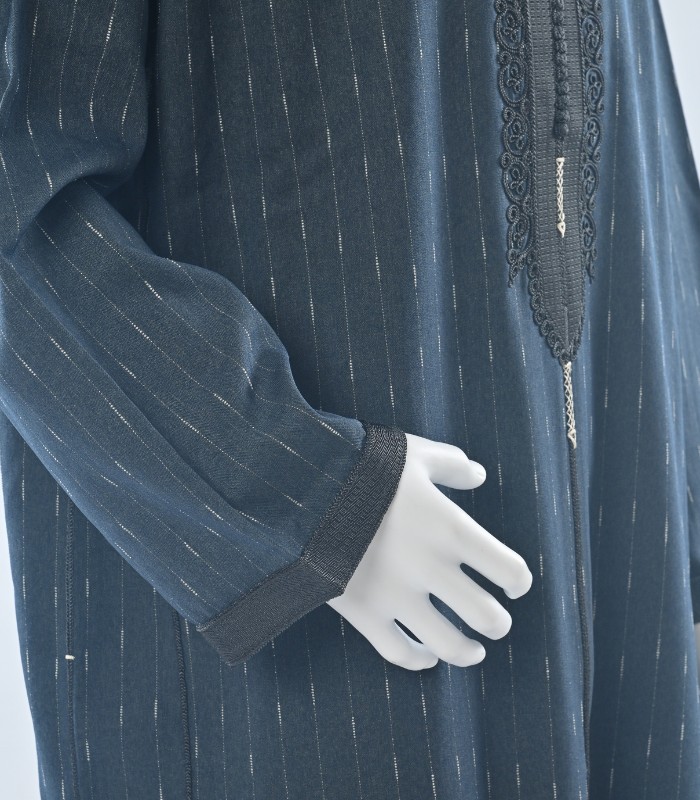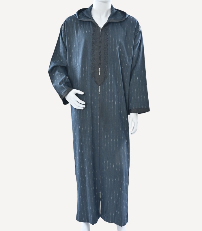 jellaba homme en fil rayé, alliant légèreté et élégance. Une pièce raffinée au style authentique, idéale pour un usage quotidien ou des occasions distinguées.