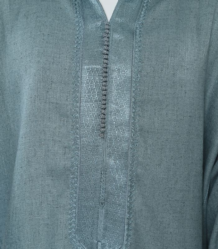 Cette jellaba en flanelle cachemire incarne l’alliance parfaite entre douceur, confort et esthétique haut de gamme. Maison El Kohen sélectionne un tissu noble aux propriétés thermiques idéales, procurant une chaleur agréable tout en conservant légèreté et fluidité.