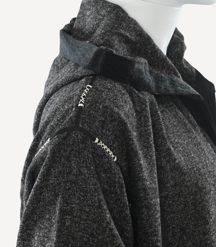Jellaba en flanelle cachemire, travaillée à la main et en machine, rehaussée d’une sfifa mrama en jacquard. Une pièce élégante et raffinée signée Maison El Kohen, entre confort, noblesse de la matière et savoir-faire marocain.