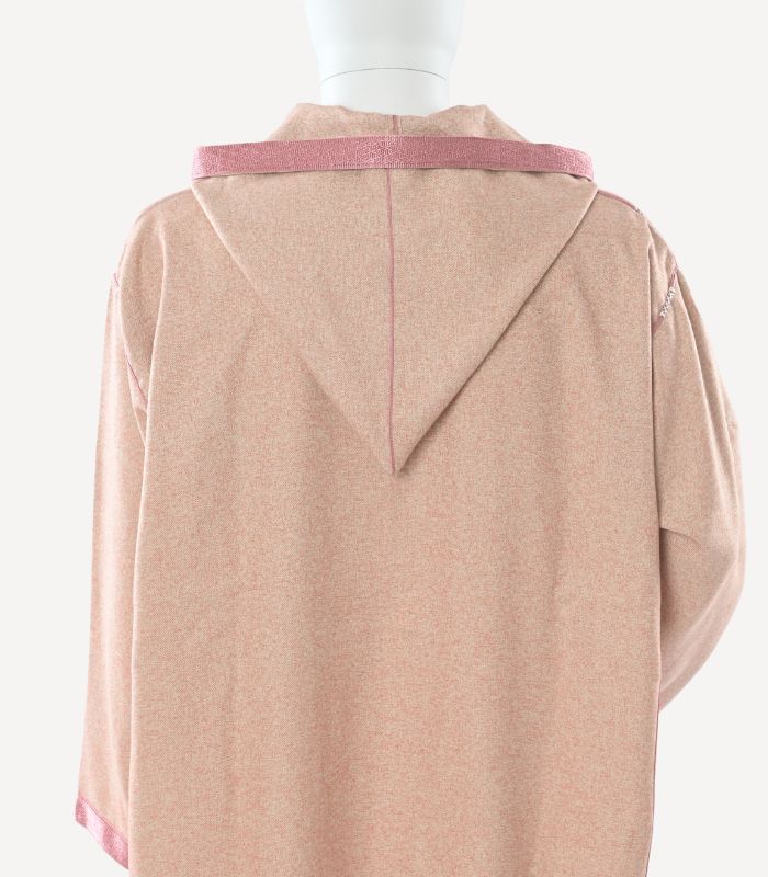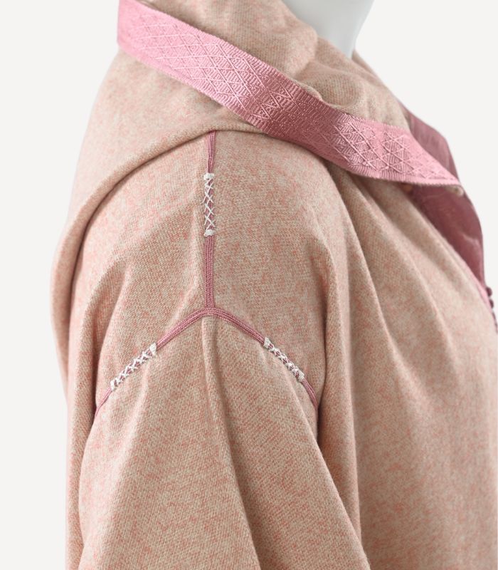 Jellaba en flanelle cachemire, travaillée à la main et en machine, rehaussée d’une sfifa mrama en jacquard. Une pièce élégante et raffinée signée Maison El Kohen, entre confort, noblesse de la matière et savoir-faire marocain.