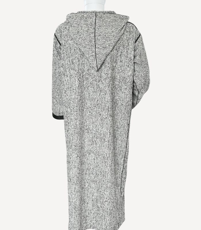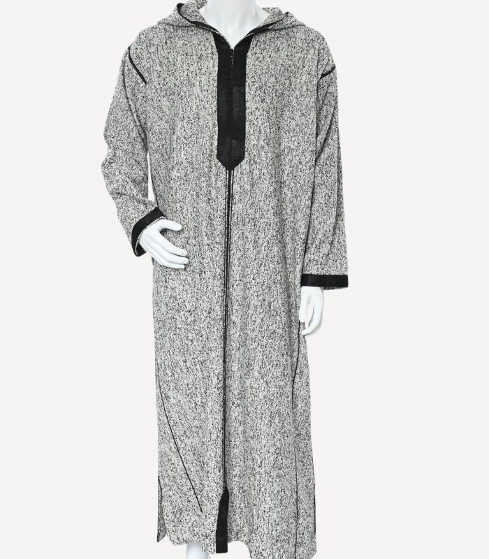 La djellaba Ouazzania est une pièce emblématique du patrimoine textile marocain, originaire de la région de Ouazzane, reconnue pour son artisanat traditionnel. Elle se distingue par sa matière chaleureuse, sa texture robuste et son tombé structuré, offrant confort et protection durant les saisons fraîches.
