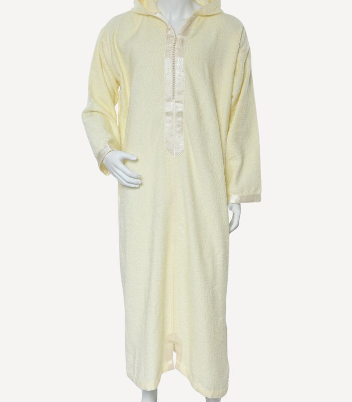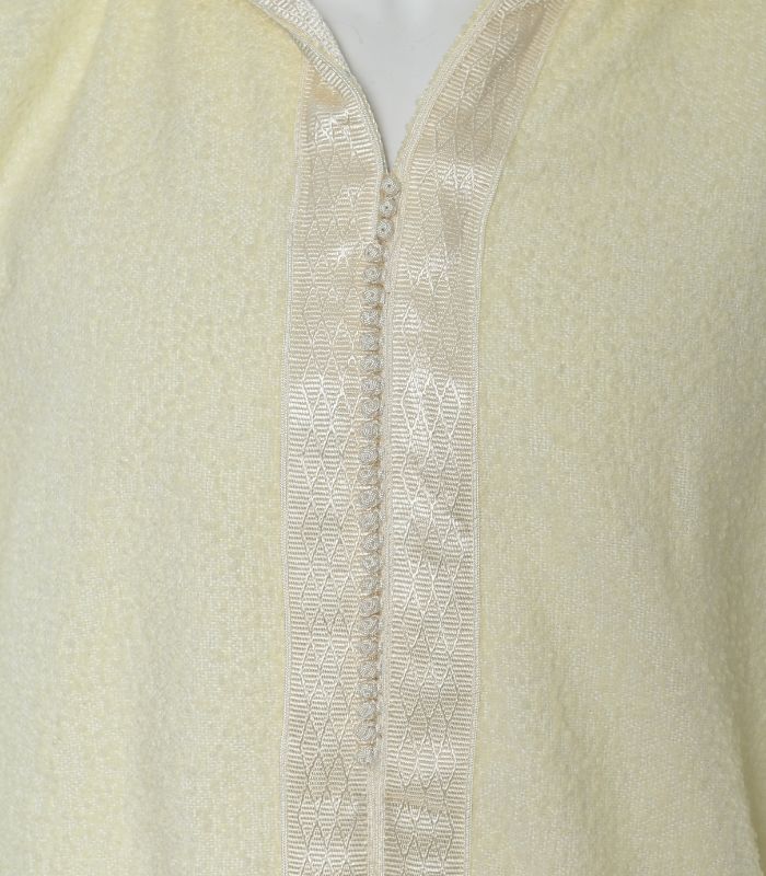 Conçue dans le respect des techniques traditionnelles, cette djellaba allie authenticité et élégance intemporelle. Sa coupe équilibrée assure aisance et prestance, tandis que les finitions soignées reflètent un savoir-faire transmis de génération en génération.