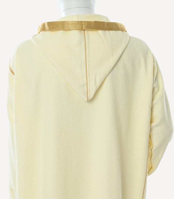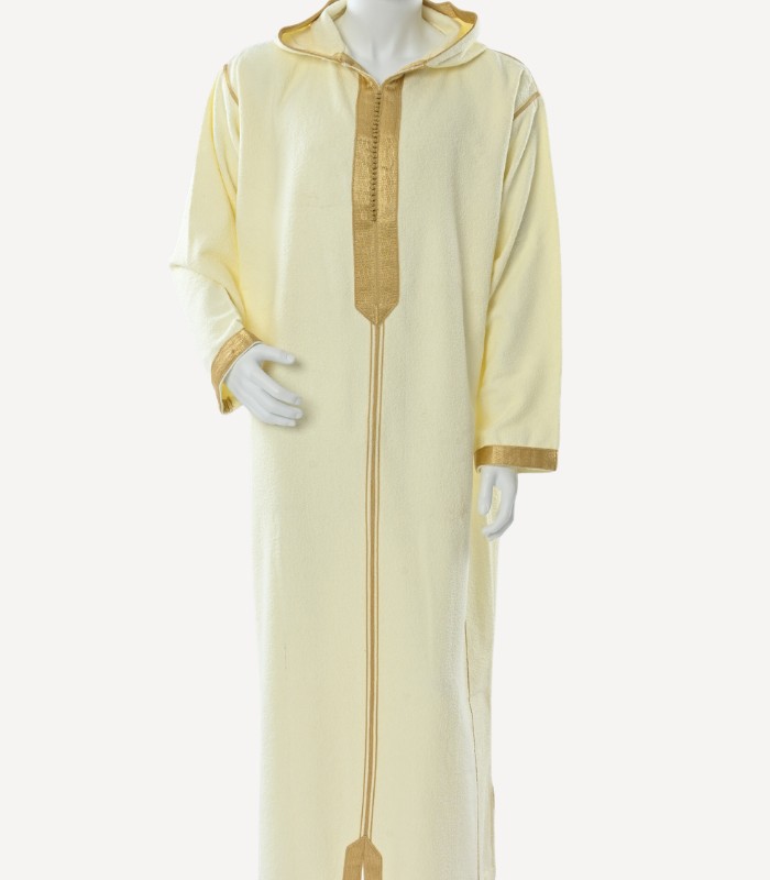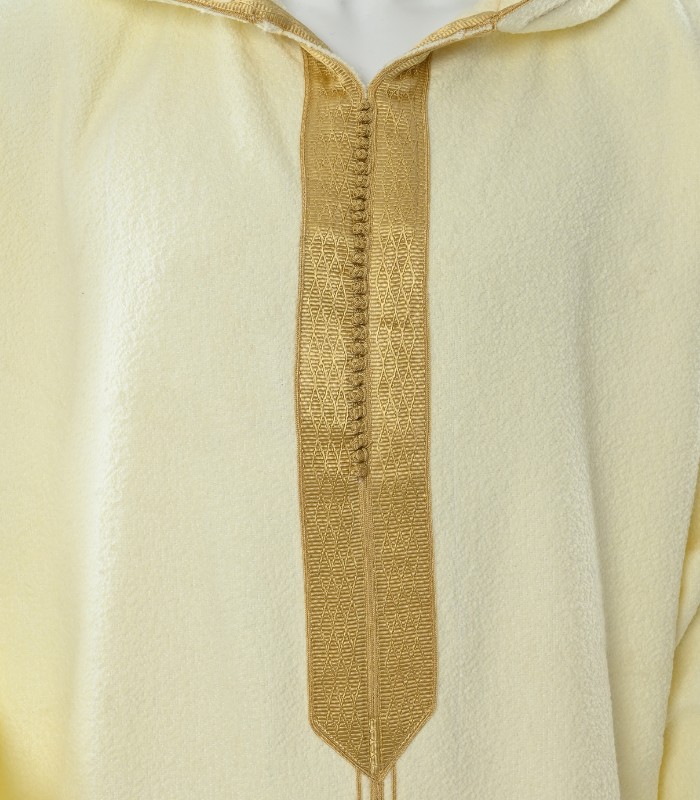 Conçue dans le respect des techniques traditionnelles, cette djellaba allie authenticité et élégance intemporelle. Sa coupe équilibrée assure aisance et prestance, tandis que les finitions soignées reflètent un savoir-faire transmis de génération en génération.
