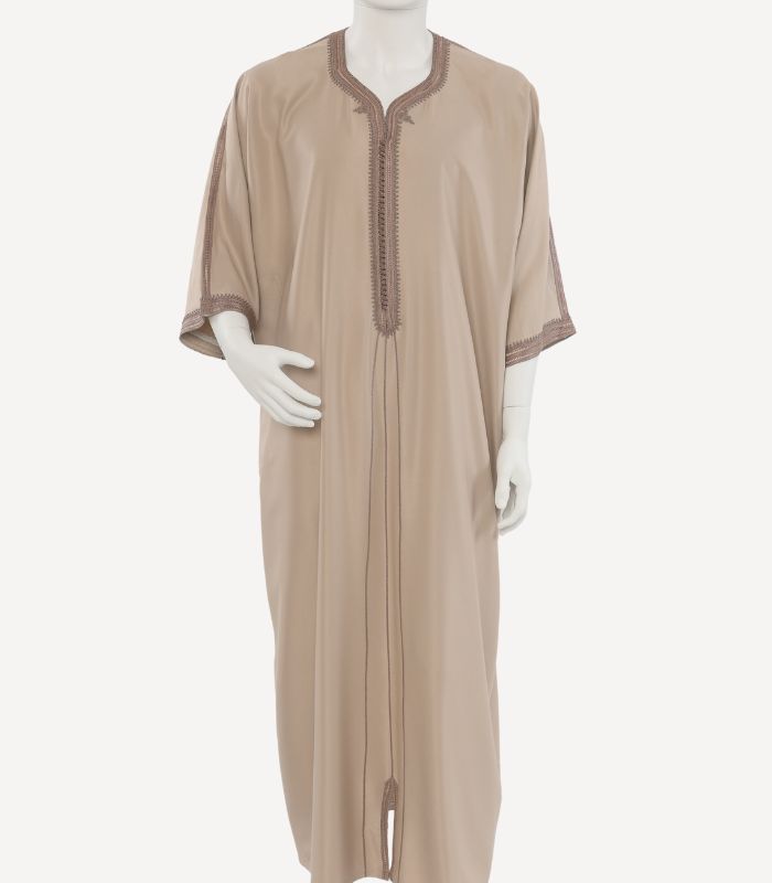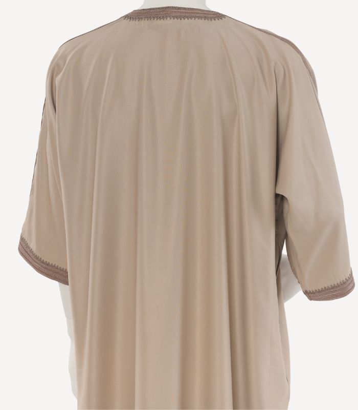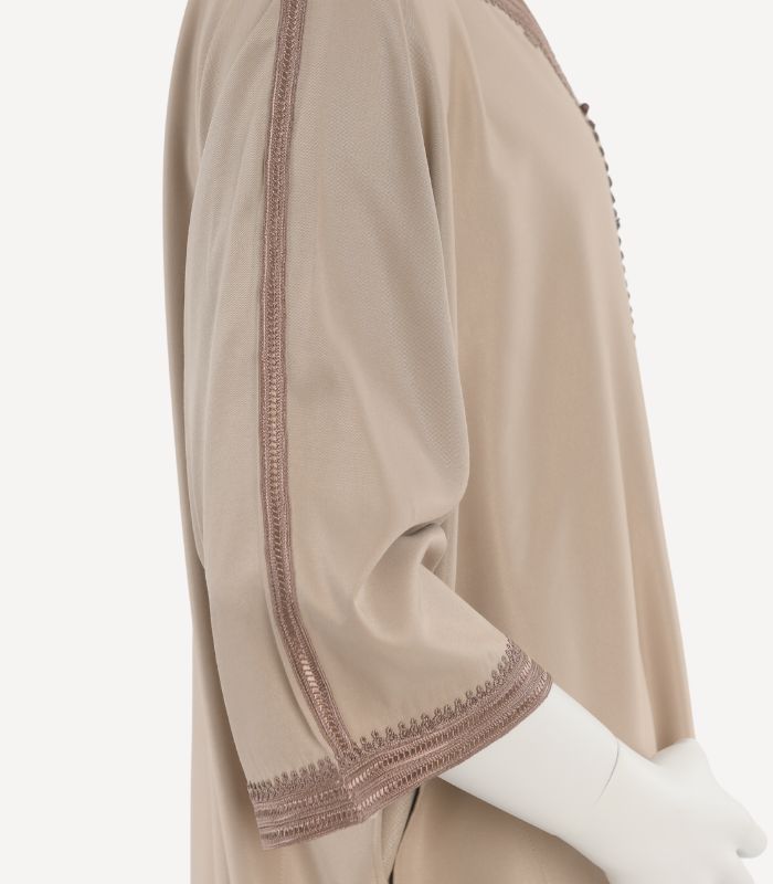 À la fois sobre et distinguée, cette gandora est idéale pour celles et ceux qui apprécient la noblesse des finitions artisanales et l’élégance discrète des tenues traditionnelles revisitées.