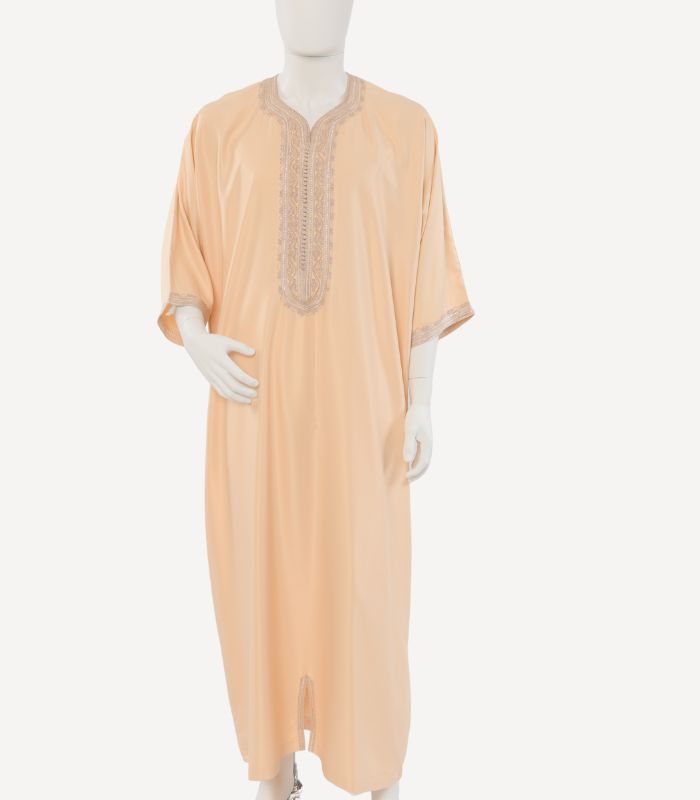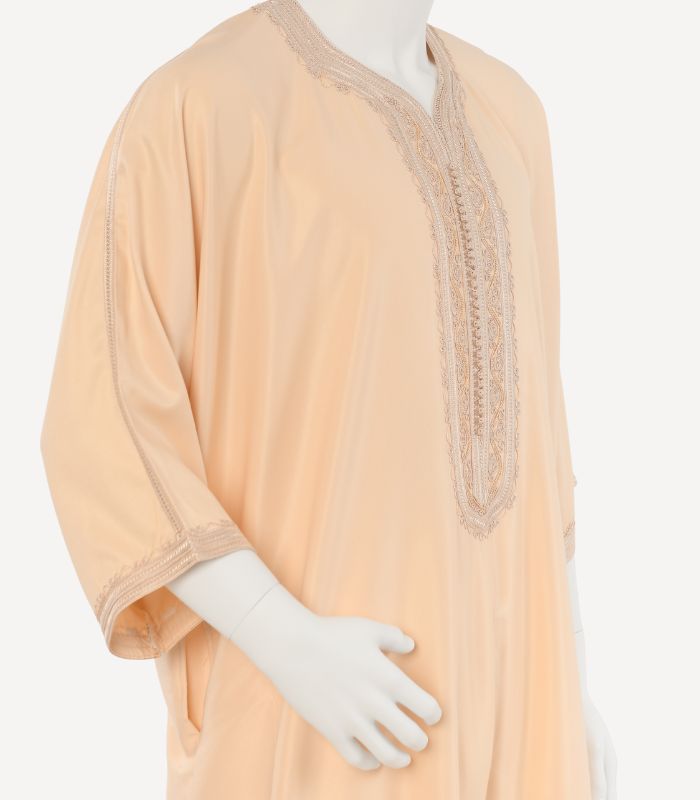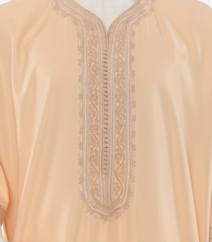 À la fois sobre et distinguée, cette gandora est idéale pour celles et ceux qui apprécient la noblesse des finitions artisanales et l’élégance discrète des tenues traditionnelles revisitées.