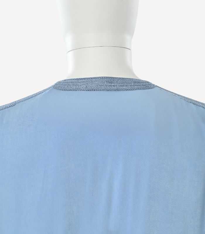 Maison El Kohen signe une gandoura d’exception en Mlifa de soie Hora, matière noble reconnue pour sa fluidité, sa légèreté et son éclat naturel. Son tombé élégant met en valeur la silhouette avec subtilité, tout en offrant un confort raffiné.