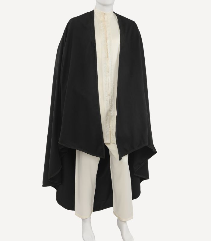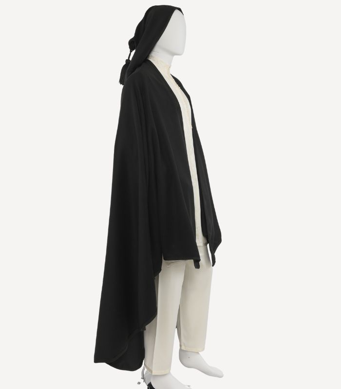 La confection en couture machine garantit une structure nette et durable, tandis que la sfifa de mrama apporte une touche artisanale emblématique de la tradition marocaine. Ce contraste entre précision moderne et finition traditionnelle confère au selham une identité élégante et équilibrée.
